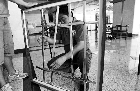 靳先生说,眼前的这个仅仅是实验品,从购买材料到组装都是他一个人完成的,“材料费用加起来总共也就一百来块钱,选料也很简单,有些方面仍然可以有很大的改进。如果选取好的材料的话,其牢固性和简易性都还会得到提高”。
